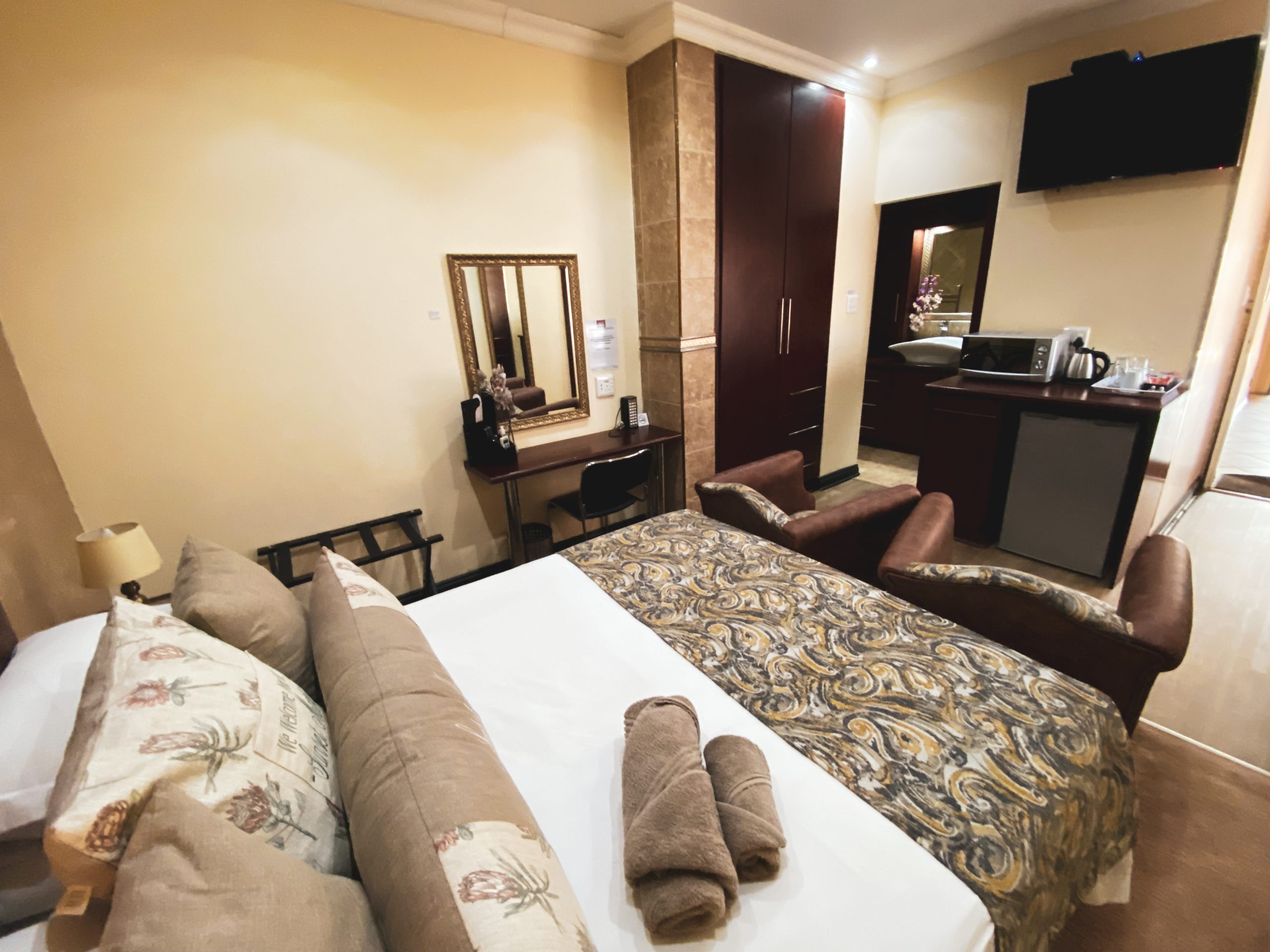 Experience the ultimate in comfort with our premium rooms featuring private balconies where you can enjoy the spectacular views that give Sunset Manor its name.